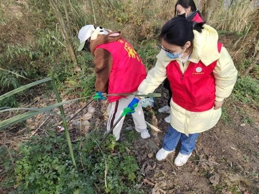 图为团队成员正在清理周边垃圾