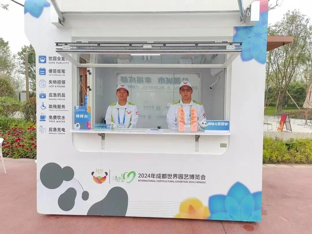 新津分会场分布着众多志愿服务小站,均配备园区导览图、世园会宣传资料、城市宣传手册,以及应急救援包、消毒液等物资,“小青椒”驻守在园区志愿服务小站,为有需要的市民游客提供帮助,确保市民游客获得舒适、便捷、高效的游览体验。