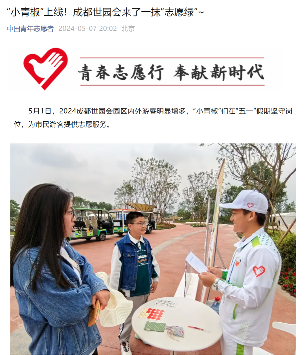 同时,随着世园会开幕,武侯、锦江及地铁18号线三岔站等志愿服务小站的“小青椒”也正用自己的青春与热情,为这场国际盛会增光添彩。在未来,将有更多的青年志愿者们投身各类赛会活动一线,在不同领域散发出自身的光芒。