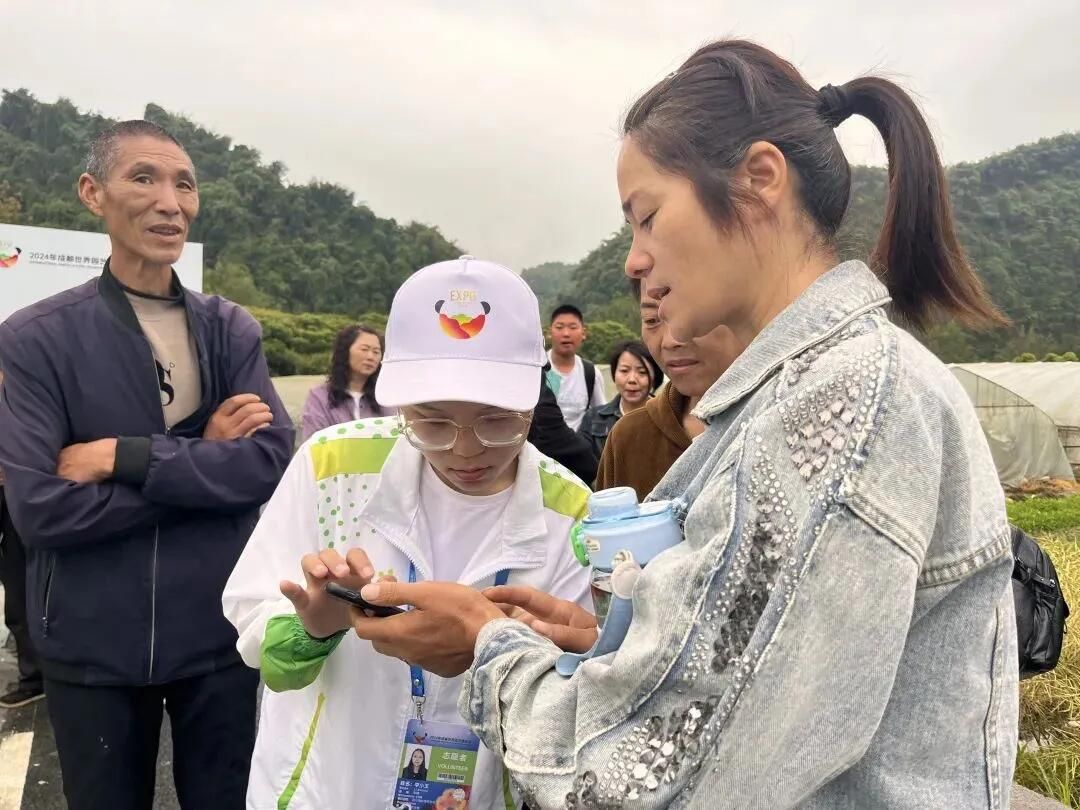 在邛崃分会场,志愿者李小玉被安排在园区入口,负责检查游客的预约码以及帮助不会预约的游客进行扫码预约。