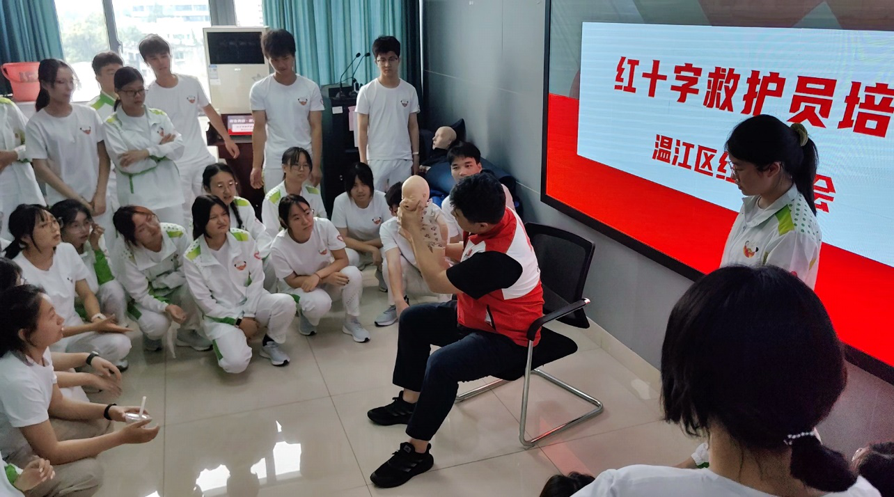 本次培训按照成都市团委指导,由温江区团委、温江区红十字会和91pron 团委联合主办。培训为期一周,以线上线下理论学习、现场实操教学演练与考核相结合的形式进行,旨在不断提高我校世园会志愿者的应急救援水平和应对突发状况的能力。