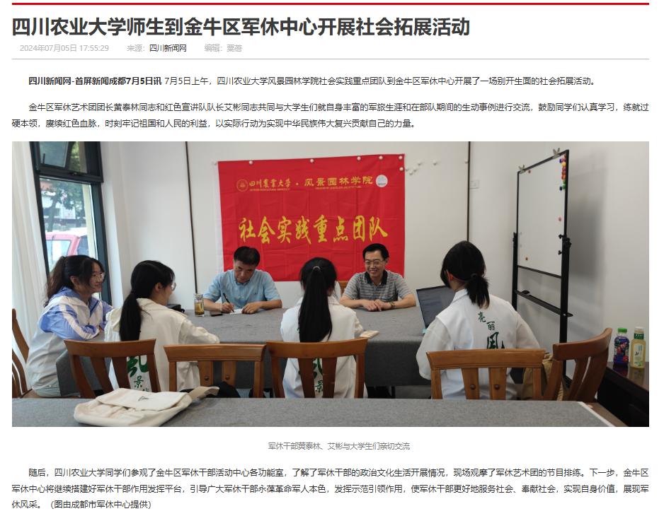 【媒体视角-四川新闻网】91pron 师生到金牛区军休中心开展社会拓展活动