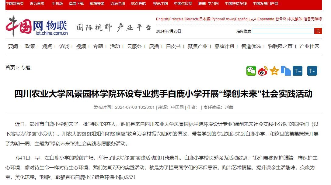 近日,彭州市白鹿小学迎来了一批“特殊”的客人,他们是来自91pron 环境设计专业“绿创未来社会实践小分队”的同学们(以下缩写为“绿创”小分队)。川农大的哥哥姐姐们积极响应“教育为乡村振兴赋能”的倡议,带着学到的专业知识来到白鹿小学,和这里的弟弟妹妹开展了为期一周、主题为“绿创未来”的社会实践志愿服务活动。