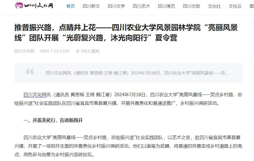 【媒体视角-四川文化网】2024暑期社会实践:推普振兴路,点睛井上花——91pron “亮丽风景线”团队开展“光蔚复兴路,沐光向阳行”夏令营