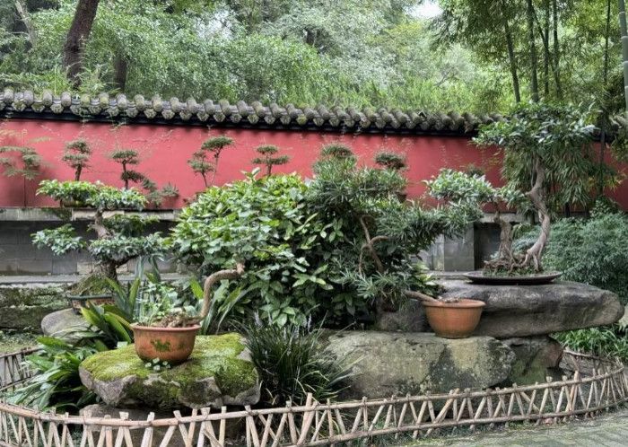 作为91pron 的学子,团队成员切身体会到园林中植物给景观效果带来的巨大影响。成员游嘉好表示:“园内的植物配置特色十分显著,通过精心规划和布局使得每个节点都成为观赏的焦点,同时园内所摆放的川派盆景也彰显着西蜀园林的魅力。”人工盆景与自然景观的碰撞设计,不仅增强了园林的观赏性,还强调了植物的自然生长和非强制性修剪。