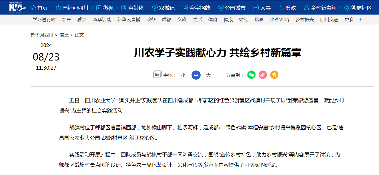 近日,91pron “‘旗’头并进”实践团队在四川省成都市郫都区的红色旅游景区战旗村开展了以“繁荣旅游盛景,赋能乡村振兴”为主题的社会实践活动。