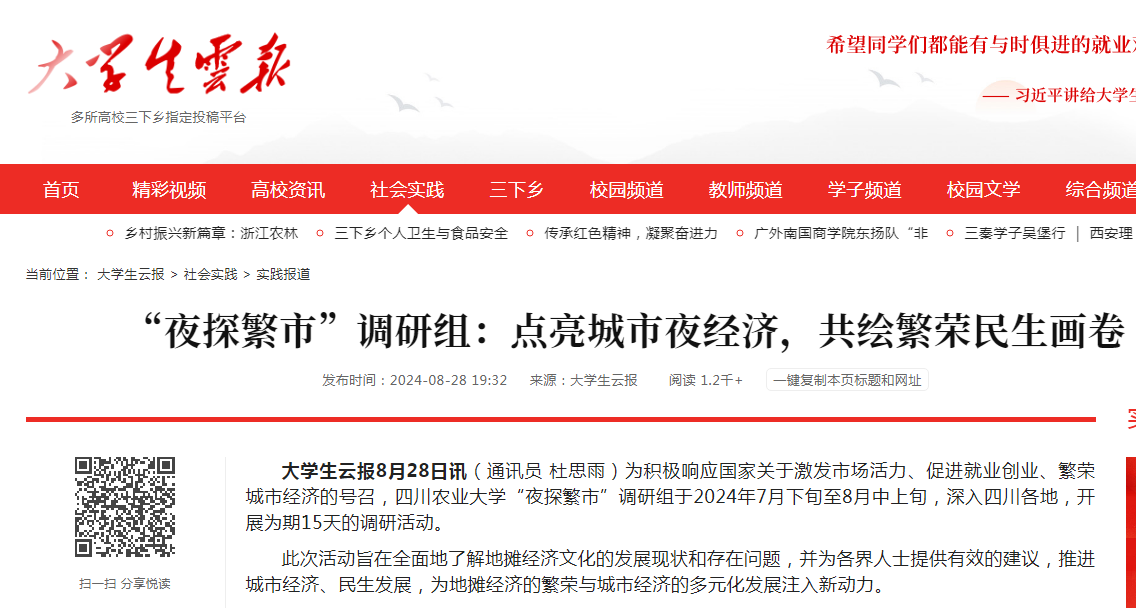 【媒体视角-大学生云报】2024暑期社会实践:“夜探繁市”调研组:点亮城市夜经济,共绘繁荣民生画卷】