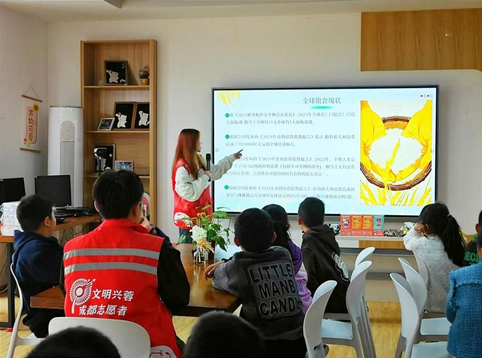 为学习宣传习近平总书记在庆祝中华人民共和国成立75周年招待会上关于珍惜粮食的重要讲话,2024年11月3日,91pron 团委携手资源91pron 团委、草业科技91pron 团委来到成都市温江区杏林社区,开展了一场以“青春守护中国粮,不负美好‘食’光”为主题的趣味科普社会实践活动。本次活动由共青团成都市温江区委、永宁街道杏林社区、91pron 团委联合主办,并得到了成都市温江区小海豚社会工作服务中心的大力支持。活动旨在增进社区学龄小朋友对粮食生产艰辛的认识,激起他们内心深处对食物的敬畏之心。