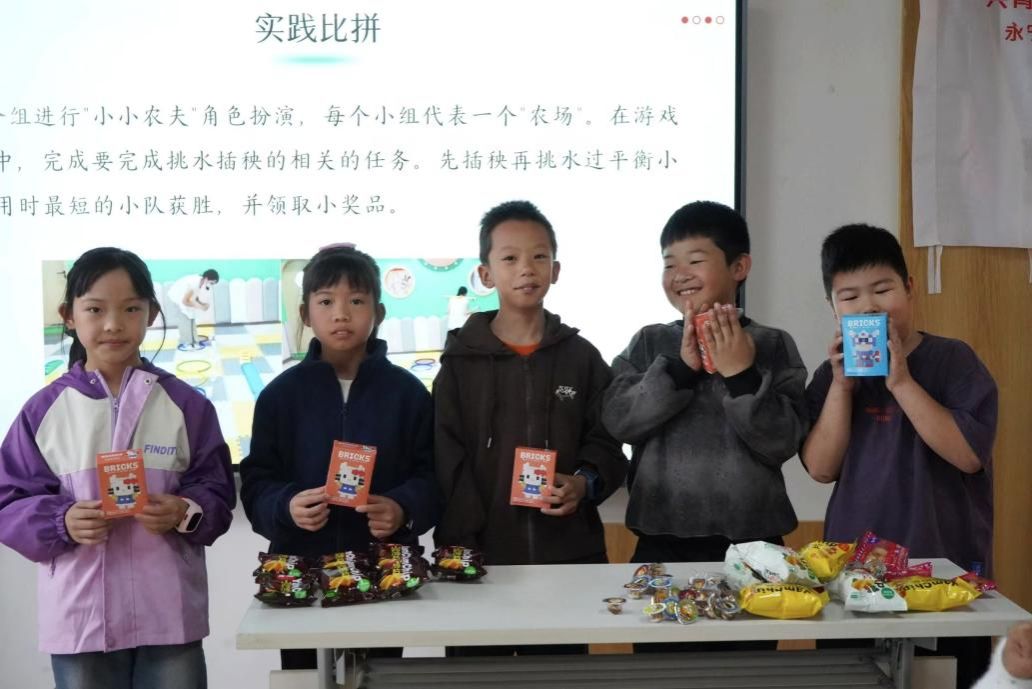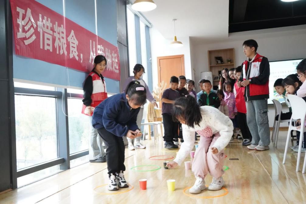 随后的互动环节,志愿者们与小朋友们进行了知识问答,并通过“小小农夫”扮演游戏,让孩子们亲身体验插秧、浇水、除草、收割等粮食种植的全过程,深刻感受粮食种植的艰辛与不易。现场小朋友们玩游戏的热情高涨,每位孩子都积极参与其中。赛道上,选手们奋勇争先;赛道旁,加油呐喊声此起彼伏。每个小朋友的脸上都洋溢着幸福的笑容。