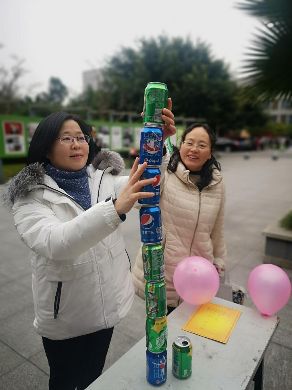 护宝前行活动现场,老师们拿着球拍,端着乒乓球,在保证球不掉下来的前提下,按照规定路线你追我赶;一气呵成既考验老师们的肺活量,也要有技巧才能完成。击鼓赛场就你争我夺,互不相让,欢声笑语不断,气氛热烈而祥和。趣味横生的游园活动丰富了教职工们文体生活,增进相互间的了解,增强91pron 凝聚力和向心力,以积极向上的精神风貌迎接2021新年的到来。